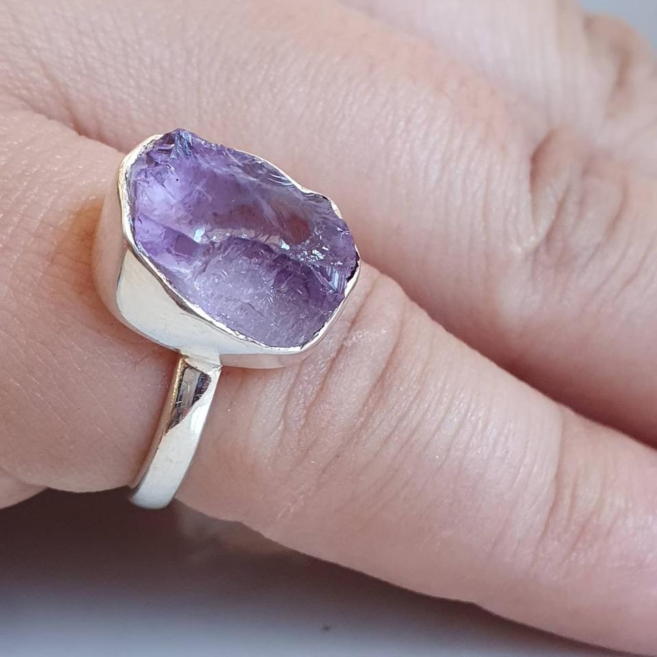 Bagues en argent 925 améthyste brute faites à la main Design de luxe plaqué or bijoux en pierres précieuses naturelles uniques pour un usage religieux chrétien