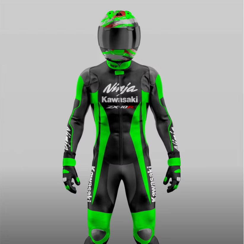 Combinaison de course en cuir Rawasaki Ninja personnalisée 1 pièce en cuir de vache/kangourou pour moto sur piste/à moto, combinaison de moto/MotoCp, niveau CE 2