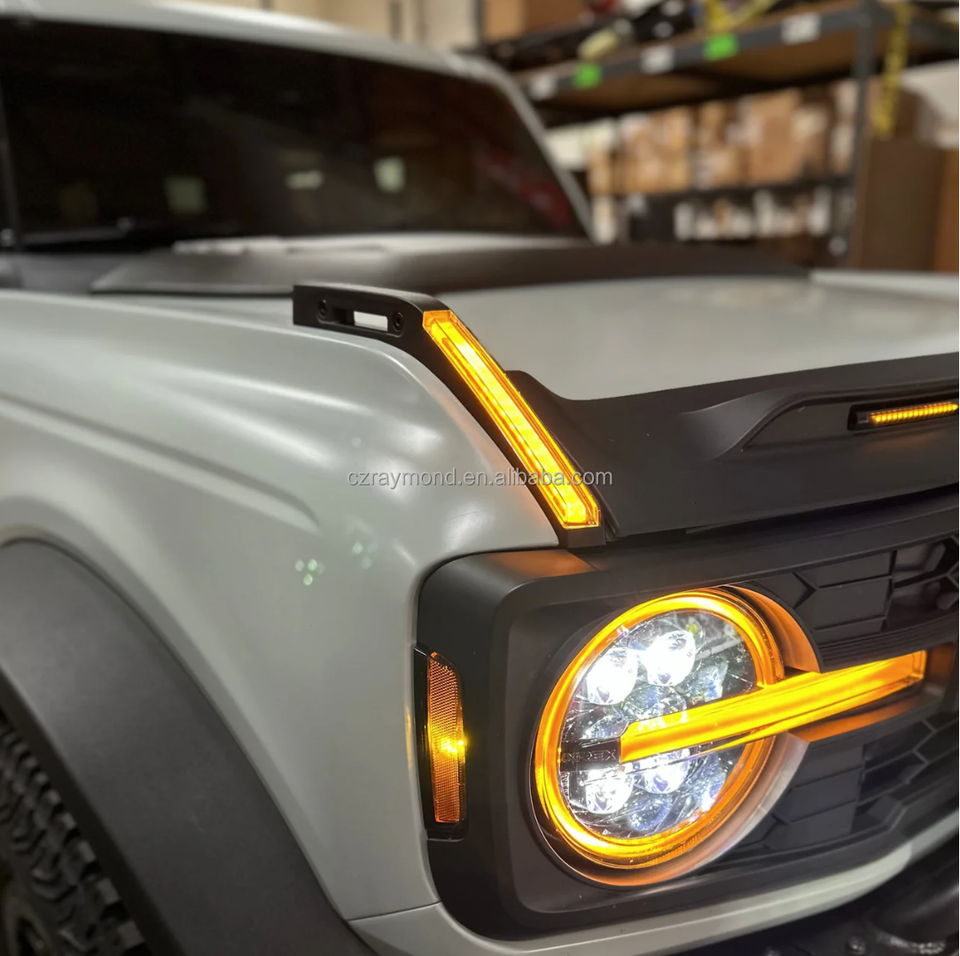 Feux de jour modifiés Raymond Car DRL à LED pour capot avant pour Ford Bronco 2021 2022 2023 2024