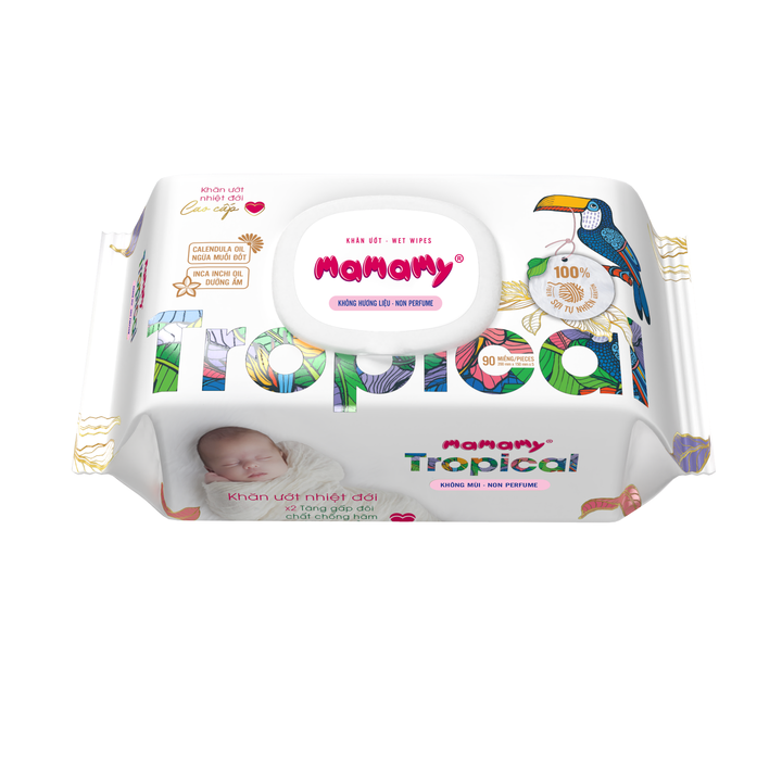 Rayon 80 Pieces Baby Cleaning Tropical MamaMamy Non-Woven Fibers 100% Natural Safe Rash Protection Coco Phosphatidy Wet Wipes