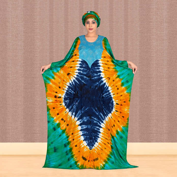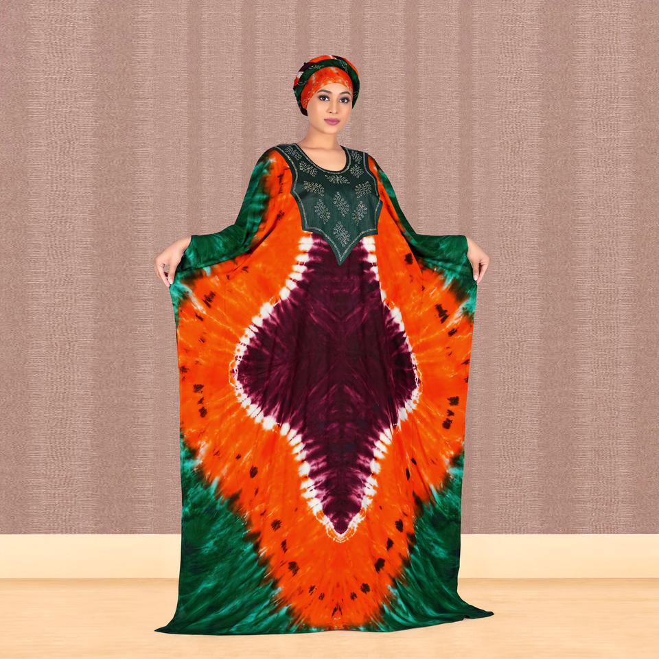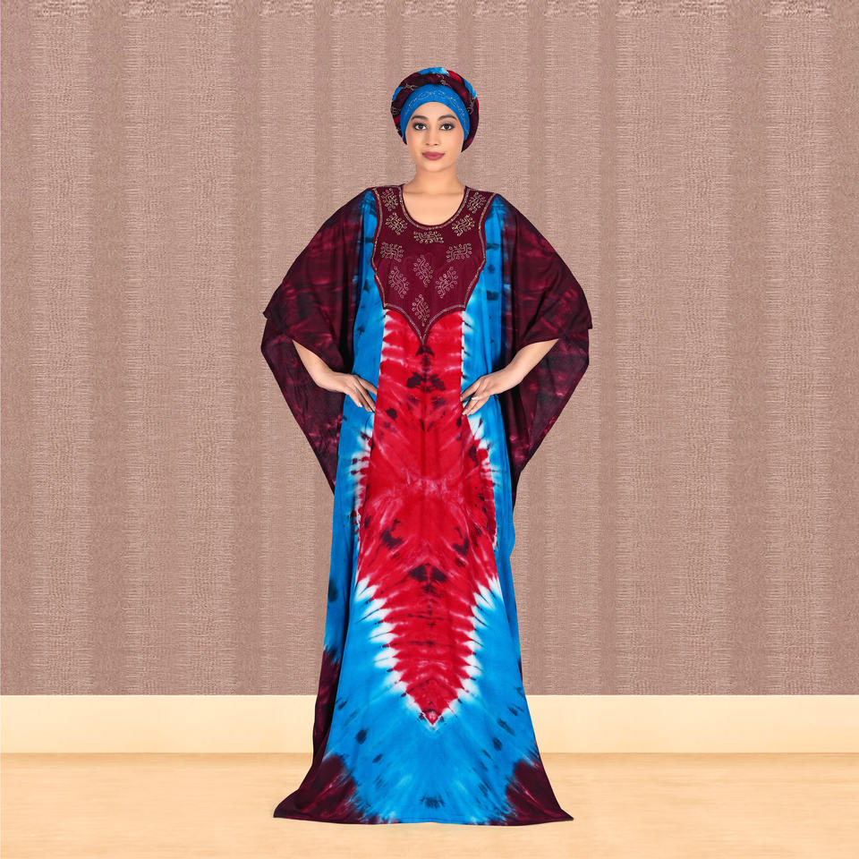 Kaftan Farasha en Rayonne à Motif Abstrait Audacieux, Col Orné, Manches Amples et Fluides, Longueur Ras du Sol, Élégant, pour Prière de l'Aïd et du Ramadan, ODM