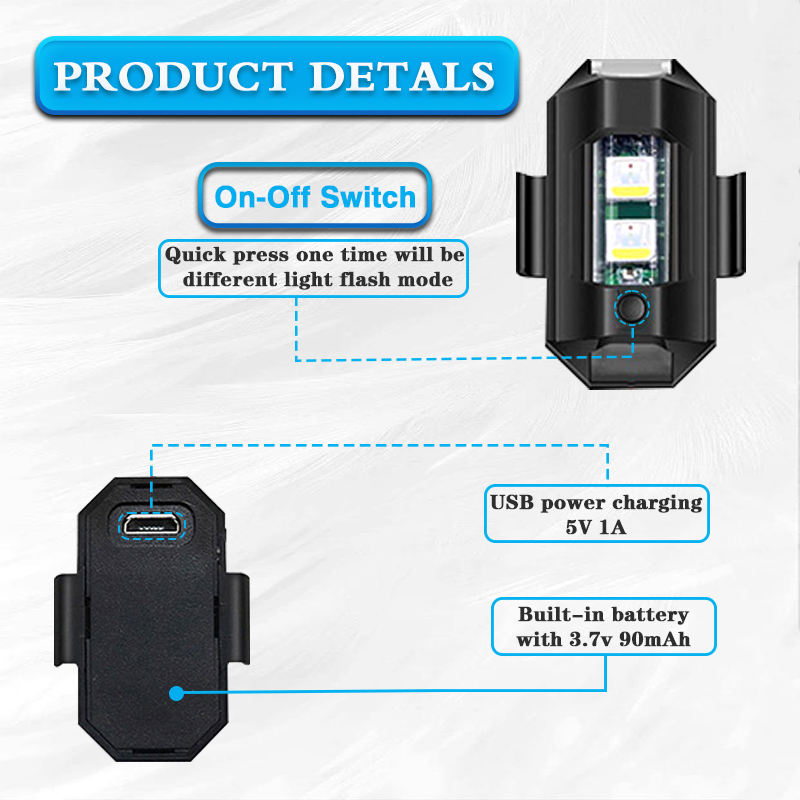 Guangzhou Tengyue Lampe stroboscopique LED 1,2 W 500 lm 180° CE RoHS pour drone RC, véhicules et camping, sans fil, 8 h