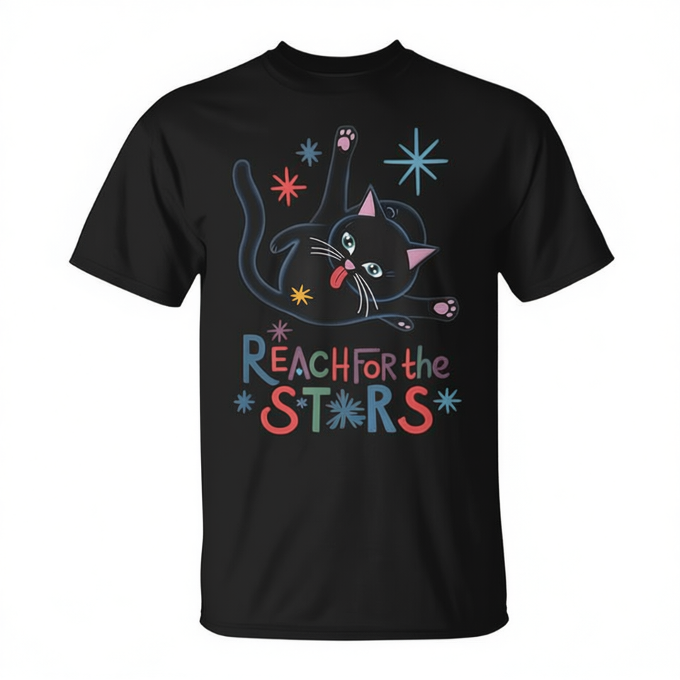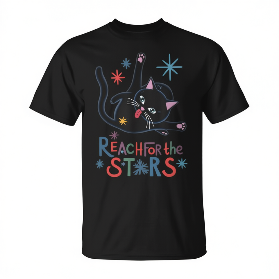 T-shirt unisexe pour adulte Reach For The Stars, motif chat mignon, manches courtes, col rond, impression numérique, promotionnel