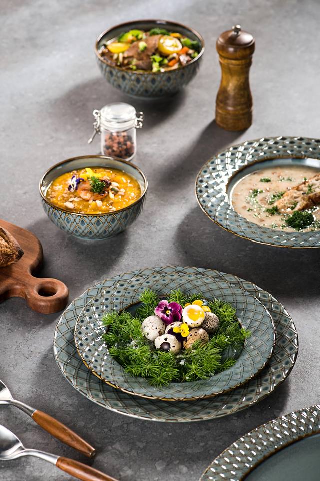 Ensembles de vaisselle émaillée réactive Vaisselle en porcelaine Assiette plate 8.5/10.5 "Assiettes à dîner vintage en céramique pour restaurant