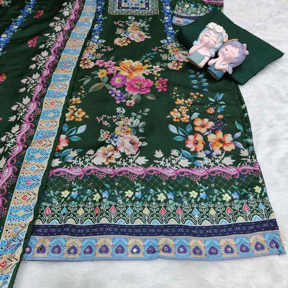 Ensemble prêt-à-porter 3 pièces traditionnel en polyester mousseline Salwar Kameez, motifs floraux vibrants, Anarkali Kurta, pantalon, robe longue, livraison rapide