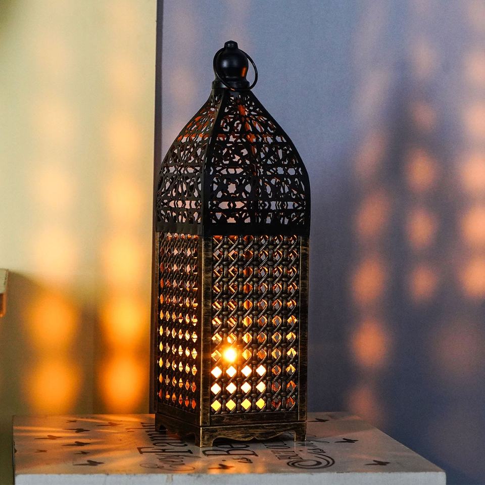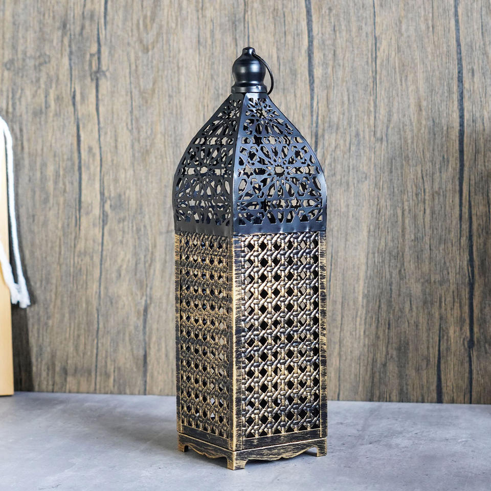 Lanterne décorative atmosphérique en fer forgé marocain, style vintage ajouré, faite à la main, prête à l'emploi et étiquetée pour l'expédition