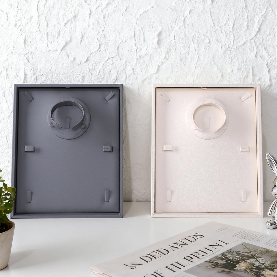 Présentoir à bijoux vertical multifonctionnel prêt à l'emploi en cuir PU gris crème pour bagues, boucles d'oreilles, bracelets et colliers
