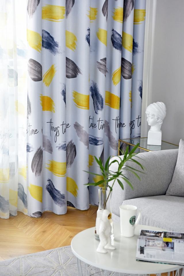 Prêt à l'emploi Style nordique pas cher prix impression tissu de rideau occultant à isolation thermique pour chambre salon