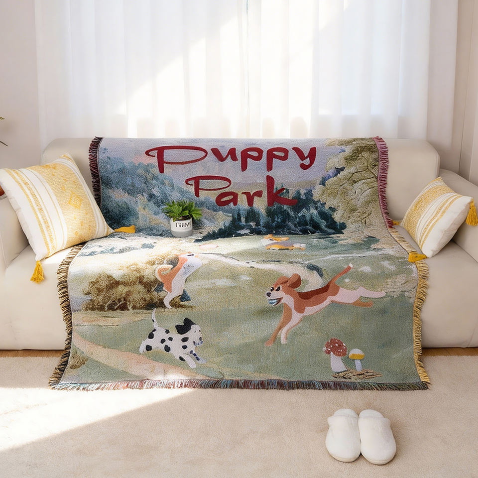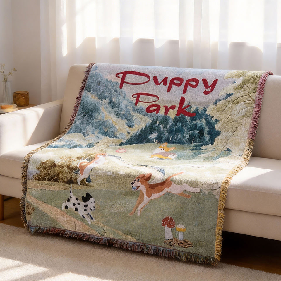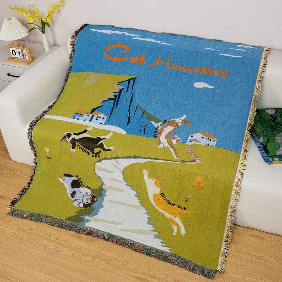 Couverture Jacquard Animée Prête à l'emploi Style Pastoral, Tapisserie Murale Confortable en Coton pour Décoration et Cadeaux de Camping