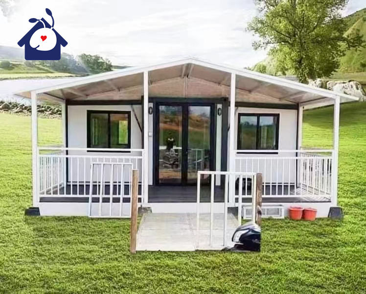 Maison préfabriquée prête à l'emploi, structure en acier léger extensible de 20 pieds et 40 pieds, deux chambres, hôtel, bureau