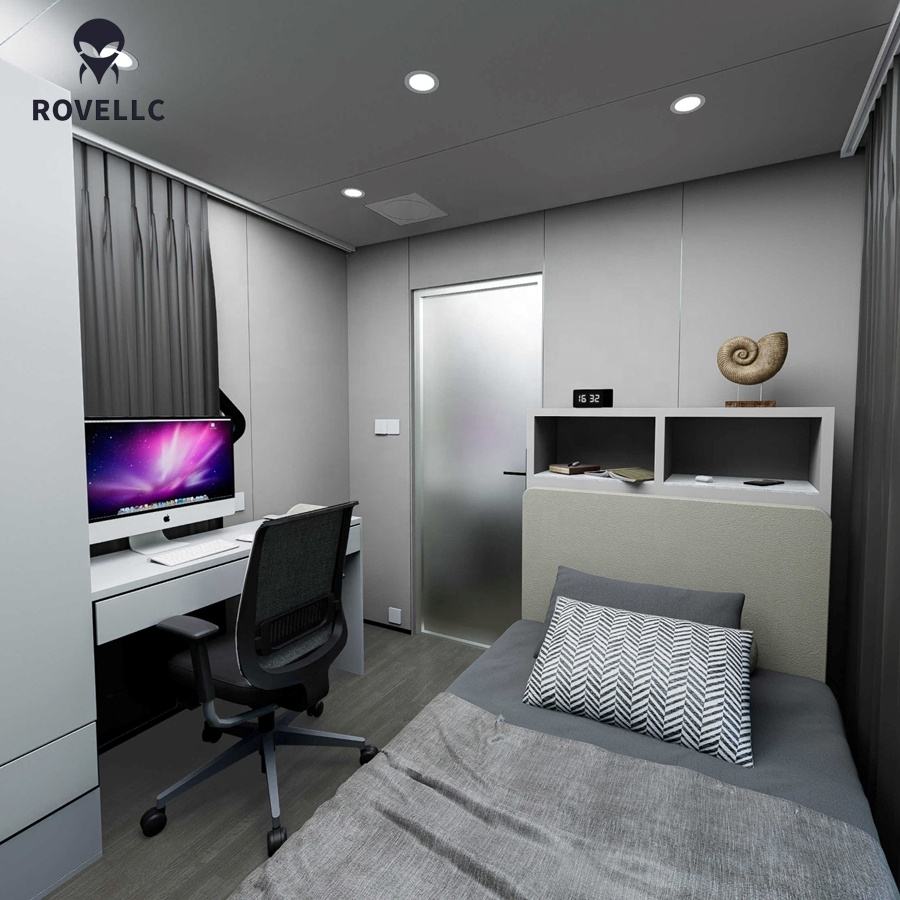 Château Villa Conteneur Préfabriqué de Luxe, Mobile et Portable, Prêt à l'Emploi, avec 2 Chambres, Espace de Bureau, Cuisine et Salon