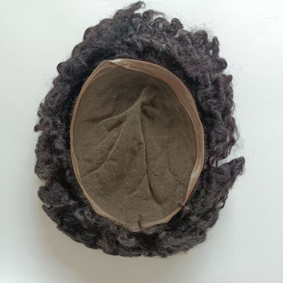 Prêt Expédition Grand Stock Bouclés Tout PU Dentelle Cheveux Patch Perruques Noir Hommes Toupet pour Homme Afro Cheveux Prothèse Avec Des Cheveux Indiens
