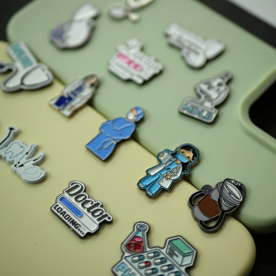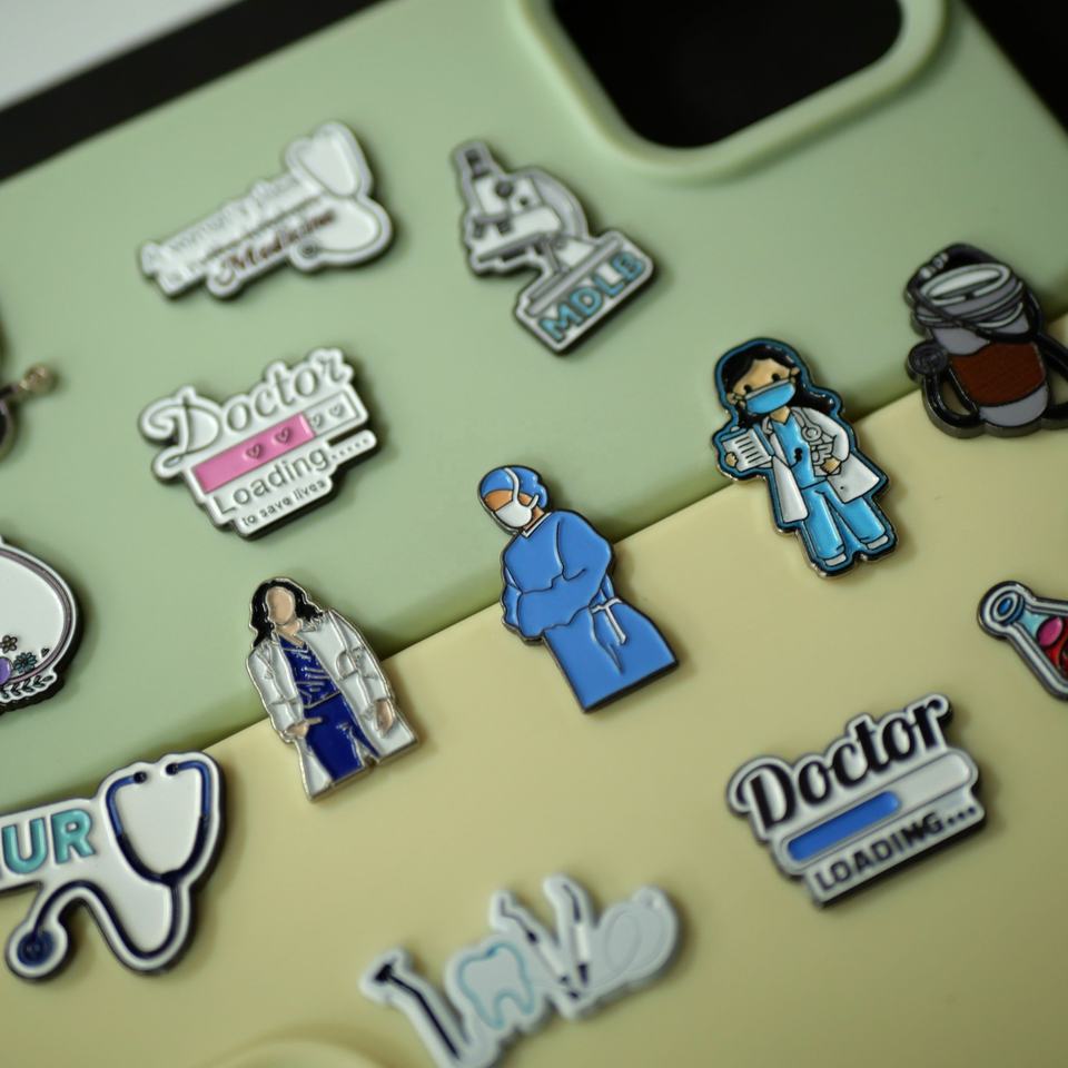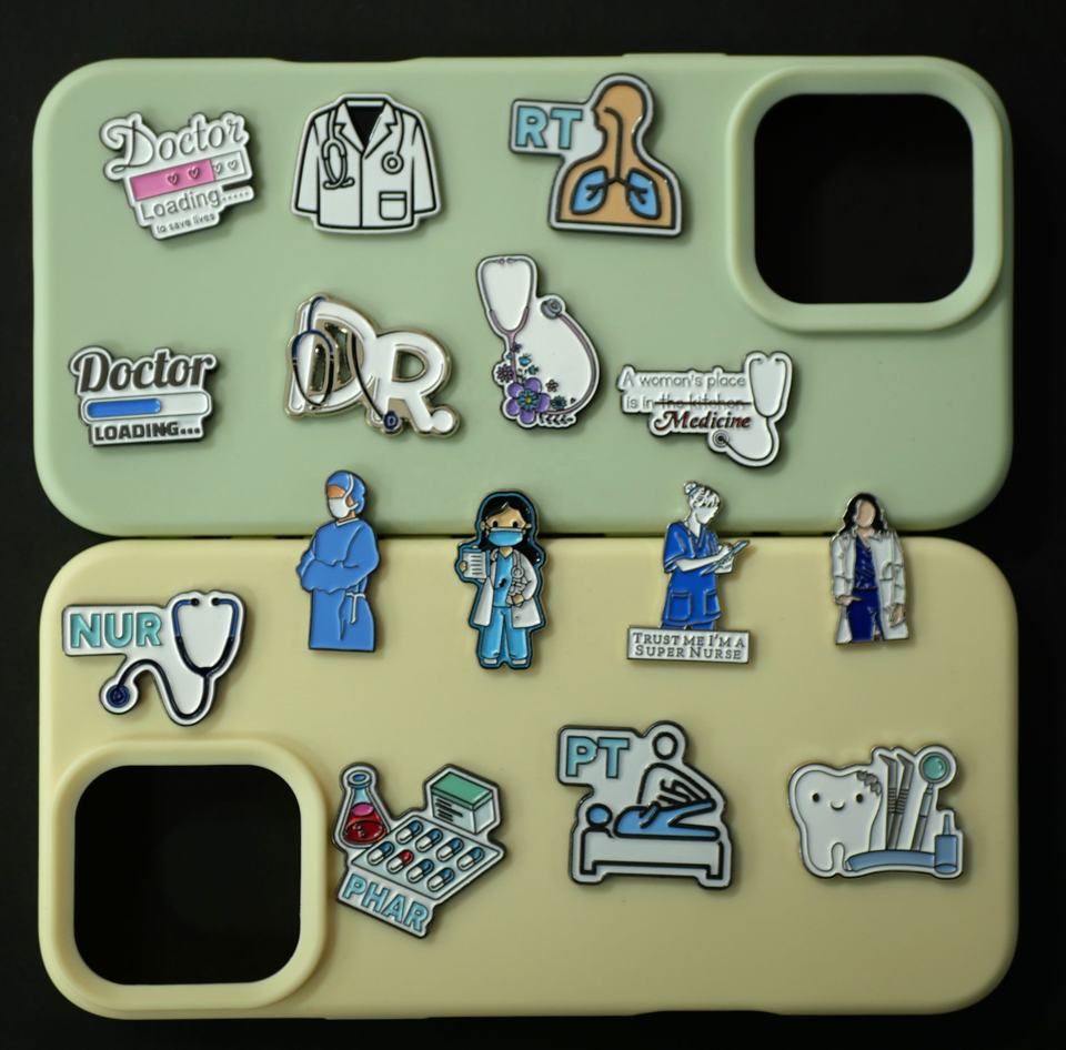 Autocollants métalliques personnalisés pour téléphone, design médical (médecin, infirmière, outils médicaux) pour coque de téléphone, en stock