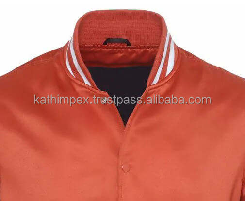 Stock prêt de bombardier de baseball en satin orange vestes légères pour hommes avec logo personnalisé pour des vêtements décontractés et d'équipe
