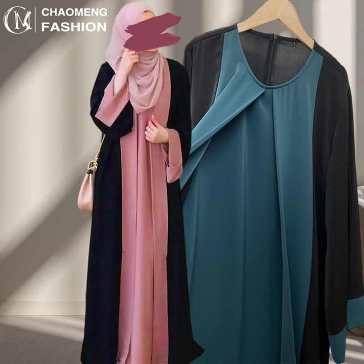 Abaya Modeste Patchwork Couleurs Variées Prête à Porter Style Dubaï Islamique Une Pièce avec Poches pour Usage Quotidien 6780 #