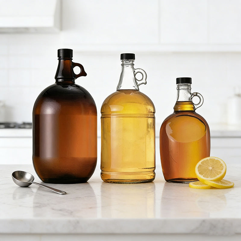 En stock, bouteille de vin, de vodka ou de whisky en verre transparent de Californie réutilisable avec poignée pour le vin, 50 ml, 100 ml, 1 L, 1,5 L, 2 L, 2,5 L, 3 L, 4 L, 5 L