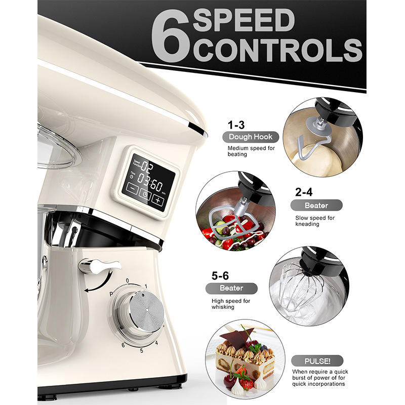 Accessoires:Crochet pétrisseur, Batteur plat, Bol de mélange, Verseur, Fil-fouet