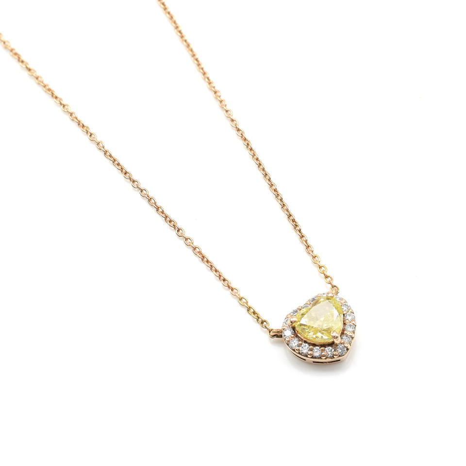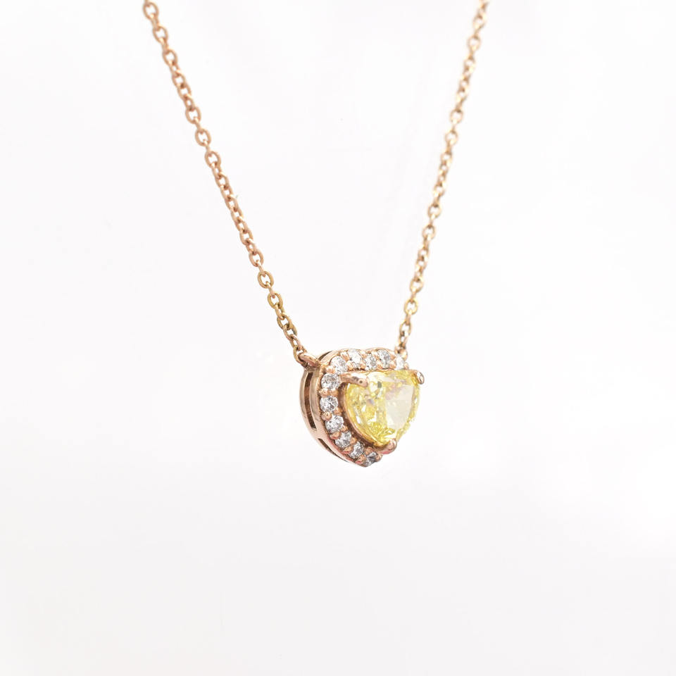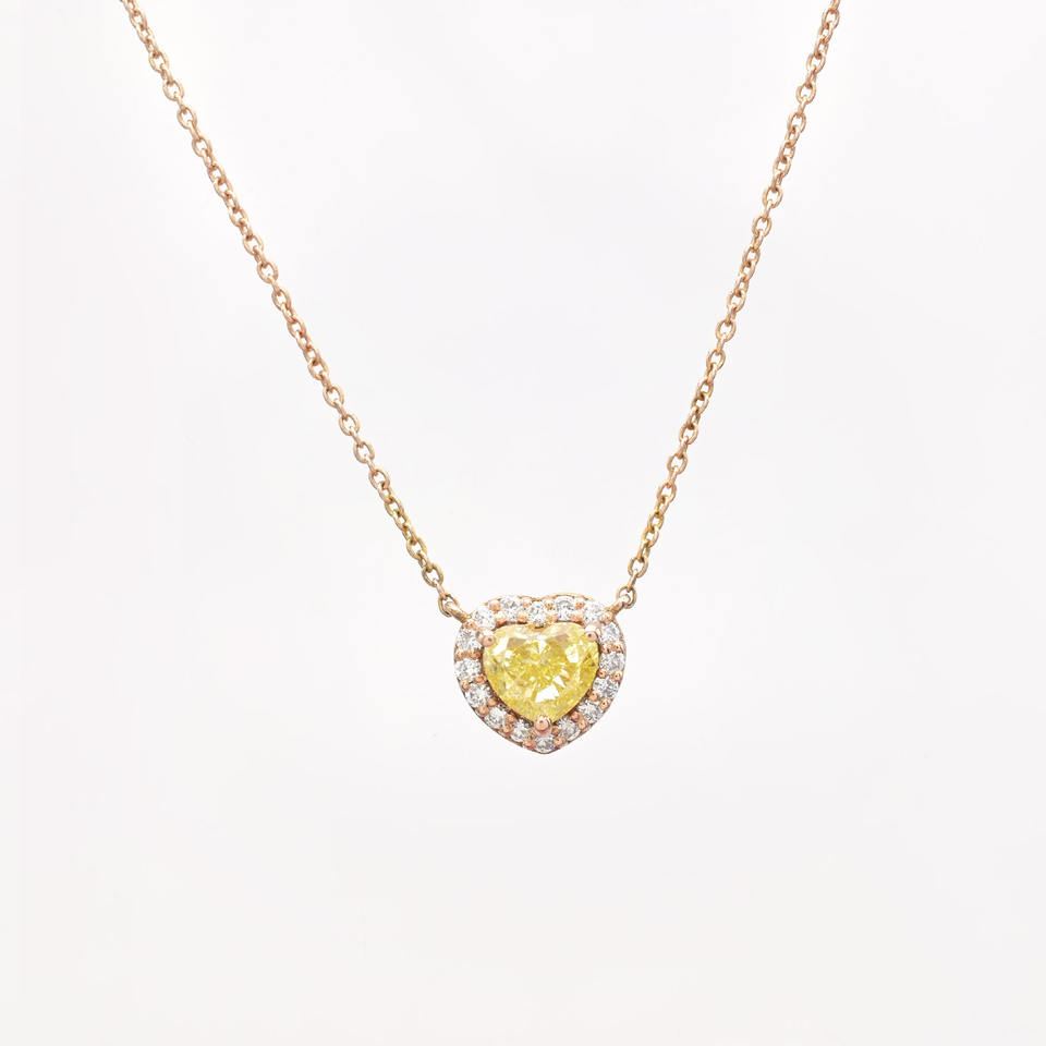 Prêt à expédier Collier de fiançailles en or rose 14 carats avec halo en forme de cœur 0,71 CT Collier ajustable en forme de cœur jaune certifié IGI Bijoux