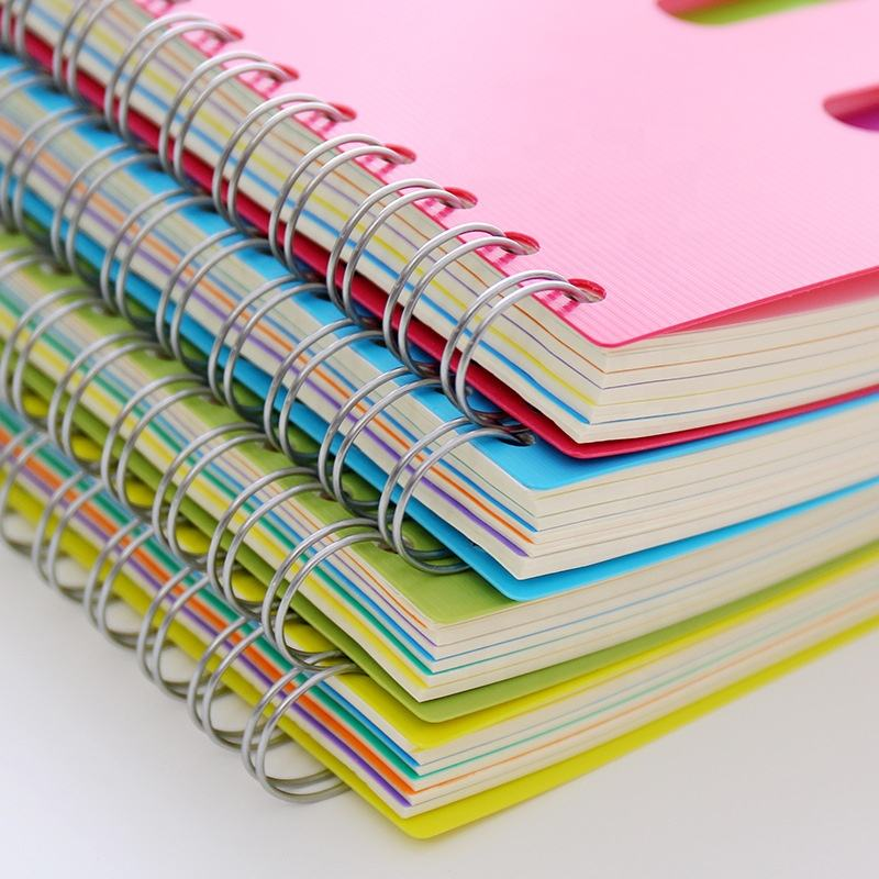Carnet à spirales A5 prêt à être expédié, couverture rigide en PP, 240 pages, séparateurs colorés avec onglets pour l'école