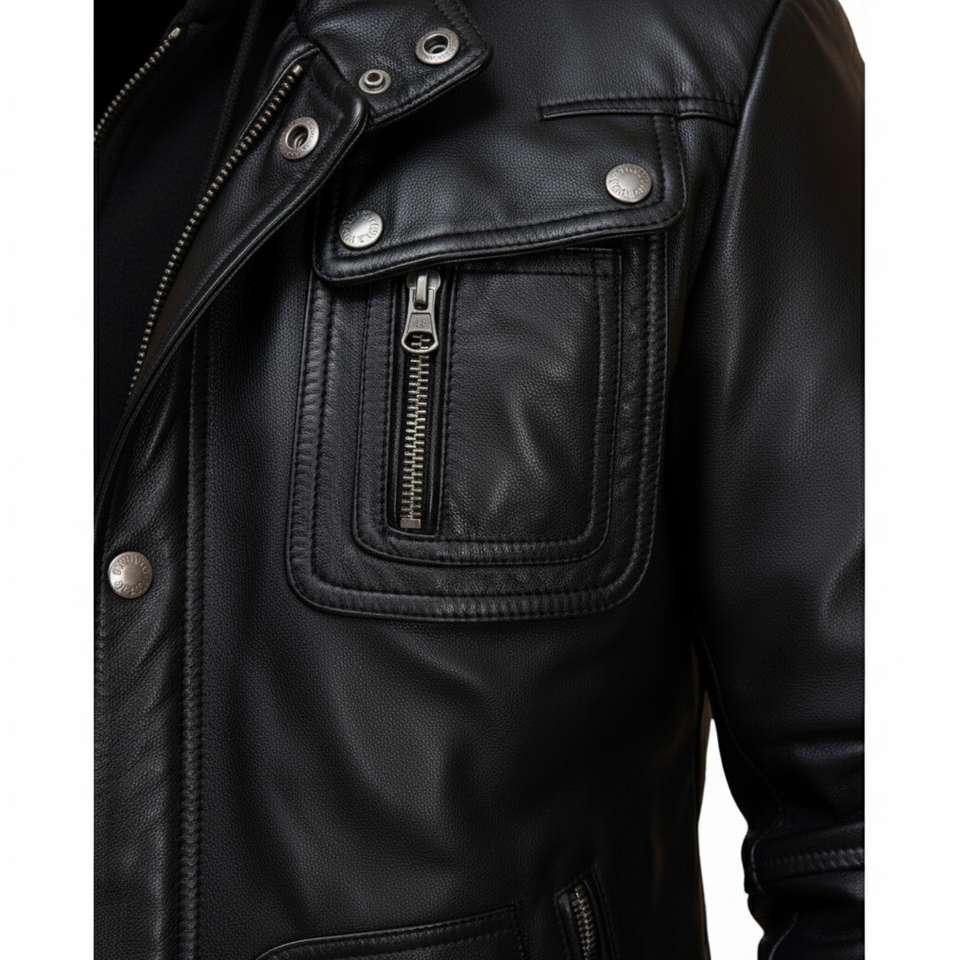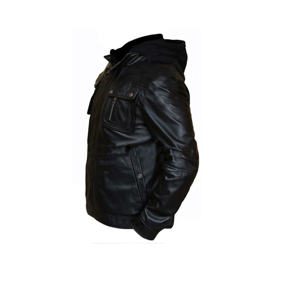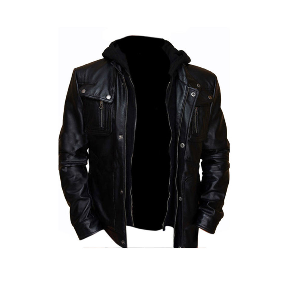 Prêt à expédier veste à capuche en cuir de motard noir pur personnalisé en gros hommes véritable vache mouton cuir veste d'hiver 1 quantité minimale de commande