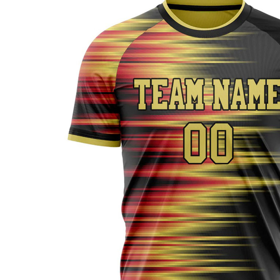 Maillots de football personnalisés sublimés, respirants et légers, prêts à être expédiés, col rond, manches courtes, coupe athlétique, design personnalisé