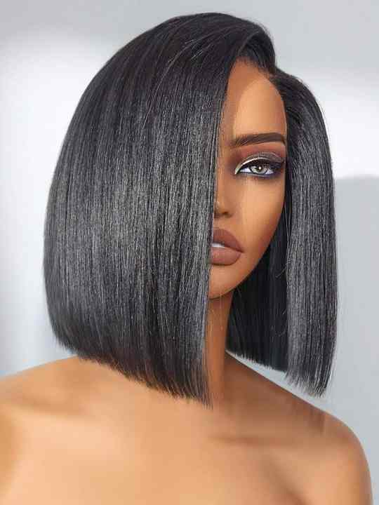 Perruque Courte Bob Cheveux Humains Vierge Prête à Expédier, Perruques Bob Courtes Ondulées Vierge Transparentes Sans Colle Pour Femmes Noires