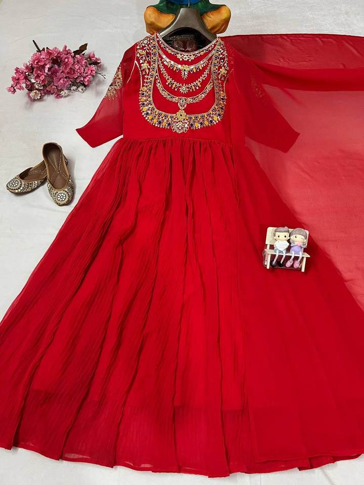 Product Name:Faux Georgette Embroidery Sequence Work Gown & Dupatta