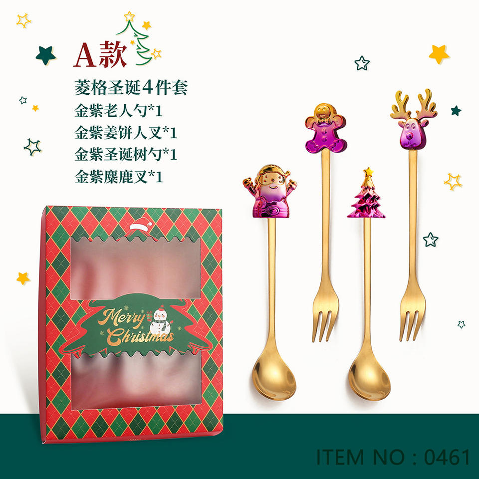 Prêt à être expédié, ensemble de couverts de Noël en acier inoxydable, 4 pièces, couteau, fourchette et cuillère, Père Noël