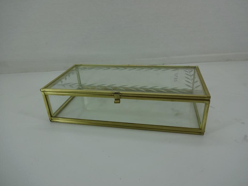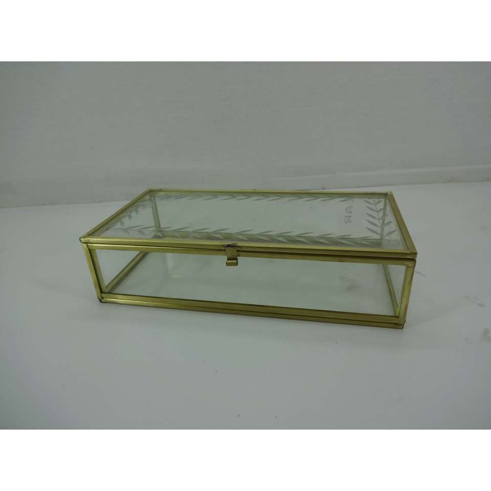 Boîte de rangement pour bijoux prête à la vente avec finition dorée en métal et verre, boîte de rangement pour bijoux artisanale