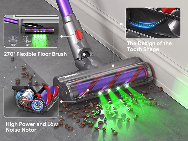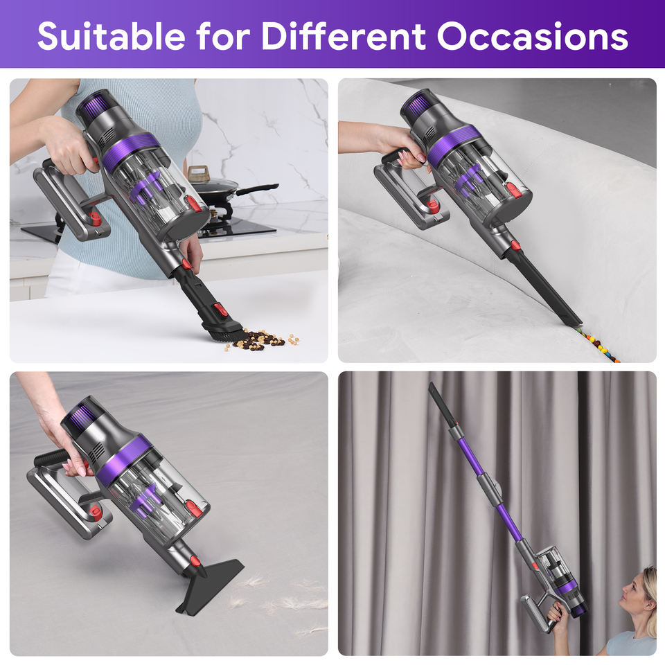 ONSEEN S702 Aspirateur balai sans fil BLDC 530W, batterie 7×2500 mAh (DC25.9V) 15–65 min, filtre HEPA 9 étapes, bac 1,5 L