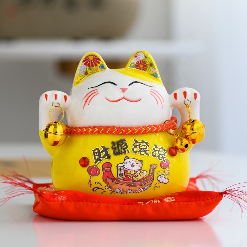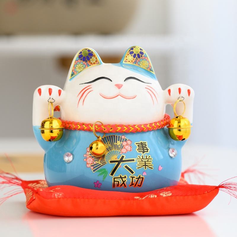 Ready to Ship Customized Cute Hot Sale Ceramic 10 Inch Japanese Style Maneki Neko Lucky Cat for Sale