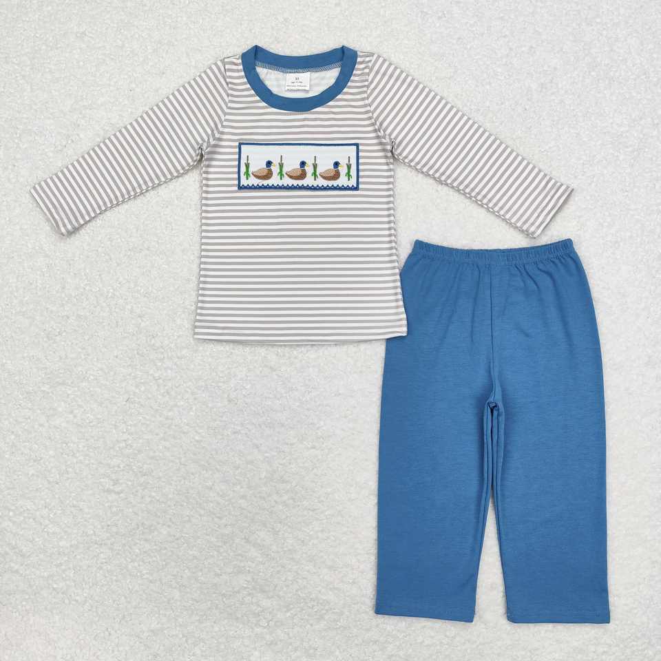 Ready to Ship Kids Boys Clothing Hunting Dog and Duck Print Long Sleeve Top With Pocket Jogger Two Pieces Outfit Wholesale