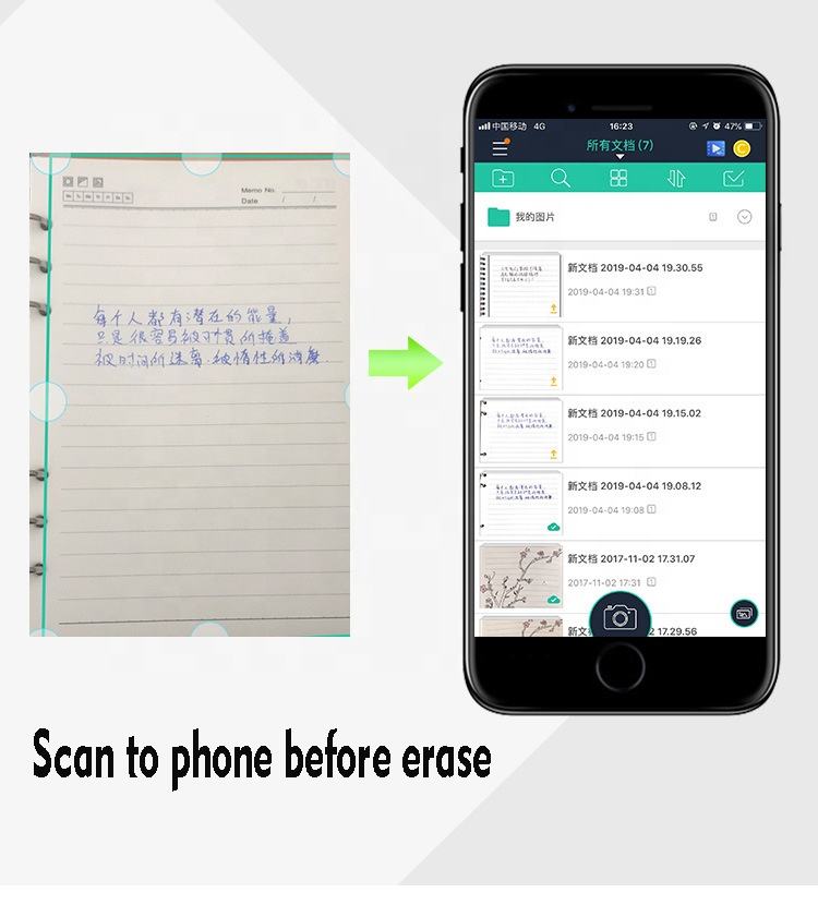 Rockbook — carnet de notes portable avec stylo effaçable, intelligent, en cuir, feuille ample, orange, prêt à l'emploi