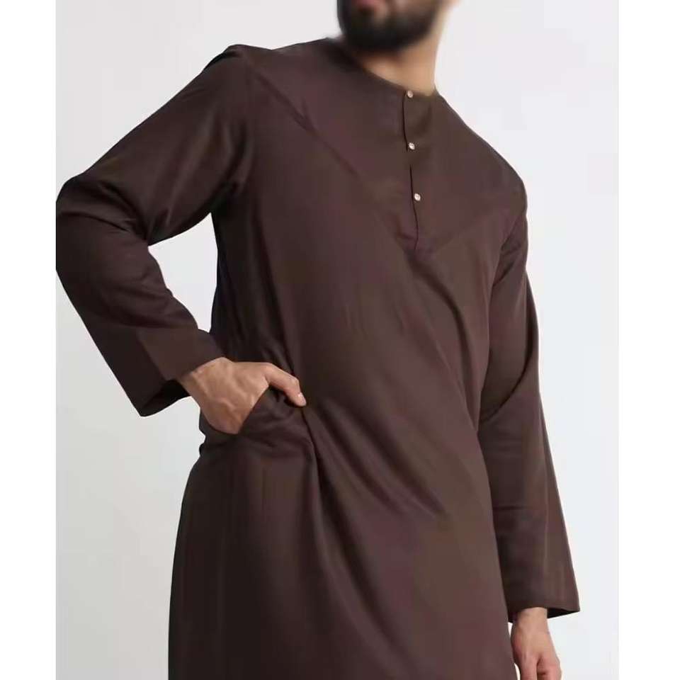 Prêt à expédier : Abaya arabe unie pour homme en polyester, Jubba Thobe, Robes extensibles dans les quatre sens, style moyen-oriental