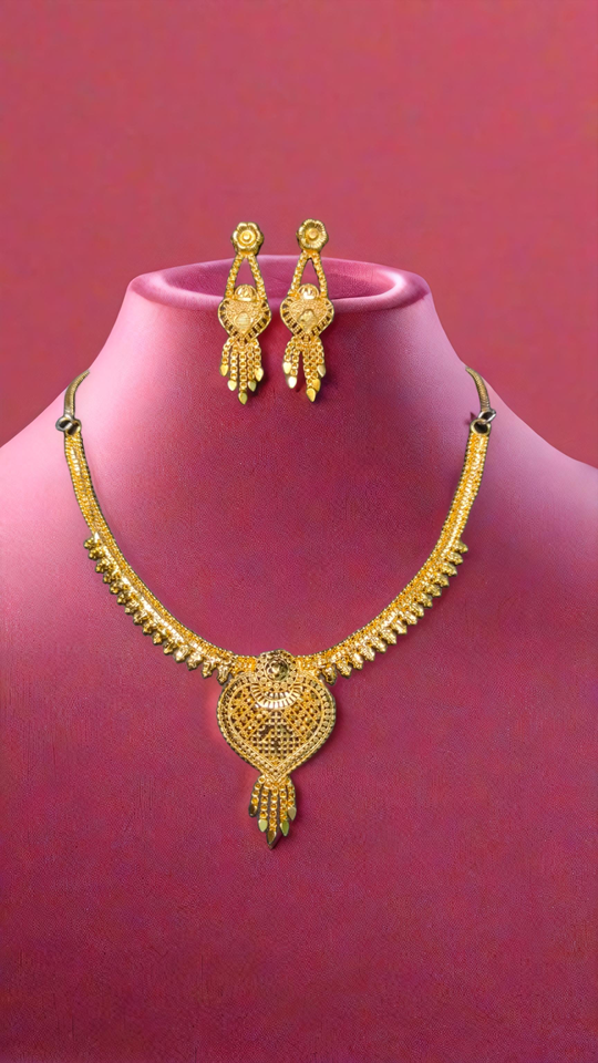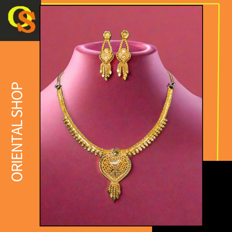 Prêt à Expédier Collier Boucles d'Oreilles Ensemble avec Plaqué Or 22K Unique Conçu Femmes Porter Collier Boucles D'oreilles Ensemble Bijoux