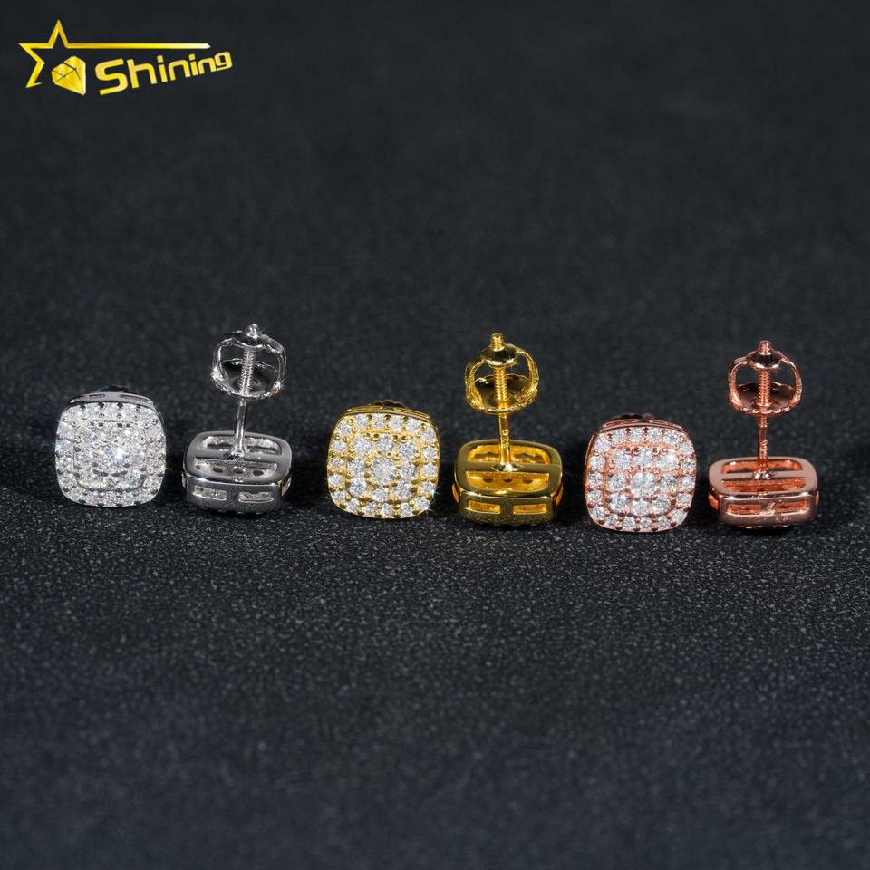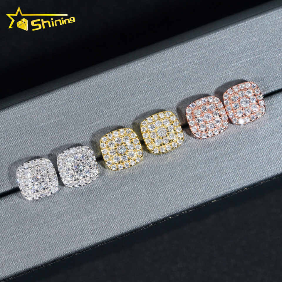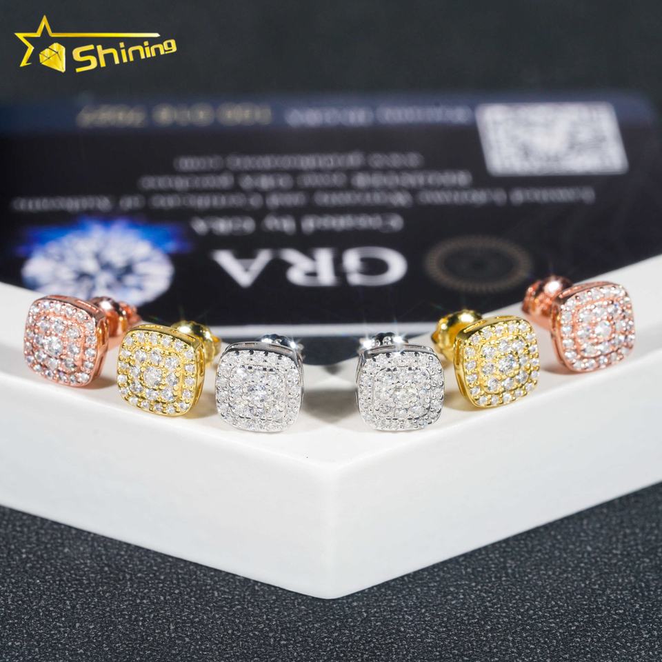 Testeur de diamants prêt à expédier boucles d'oreilles à tige en moissanite VVS en argent sterling 925 populaire Hip Hop glacé