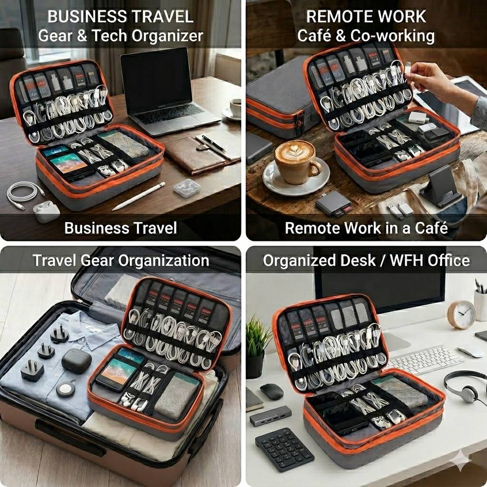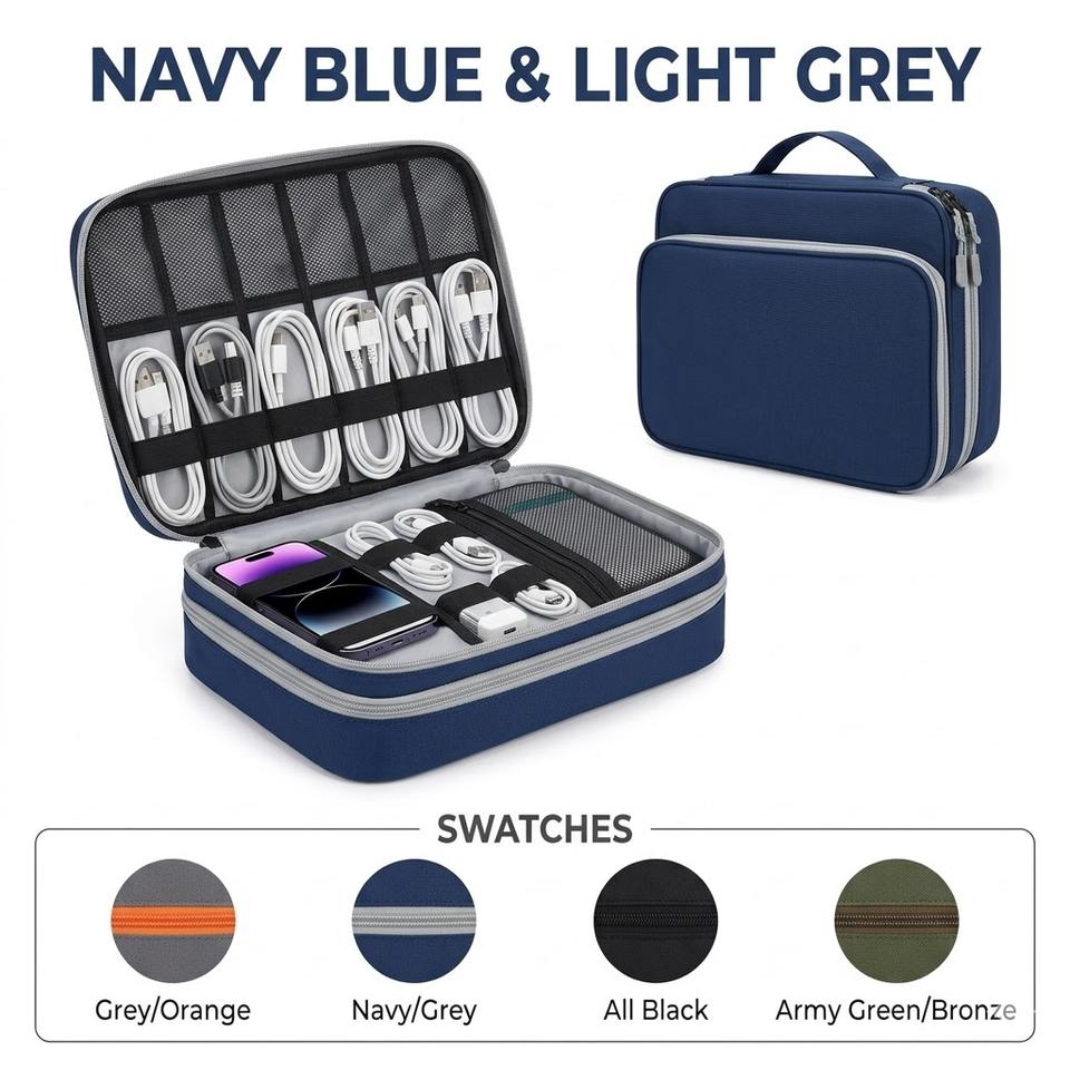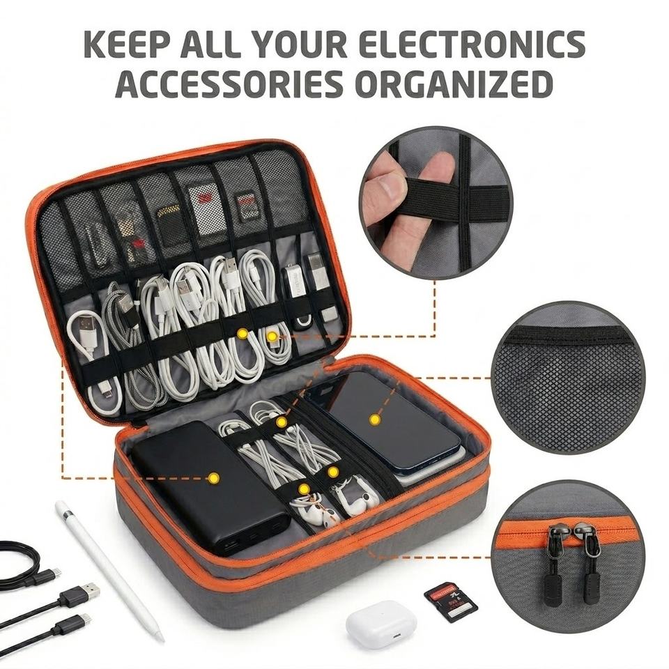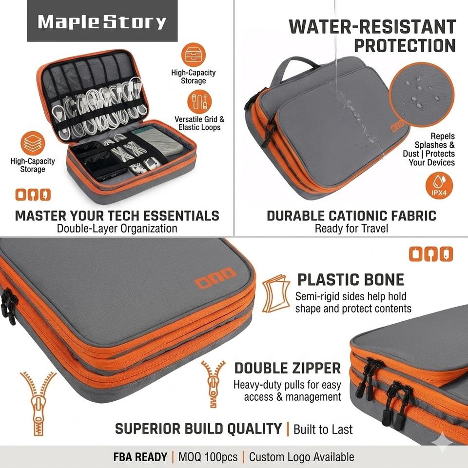 Sac de rangement numérique portable prêt à être expédié, organisateur de voyage double couche pour appareils électroniques, faible MOQ, logo personnalisé, pochette pour câbles