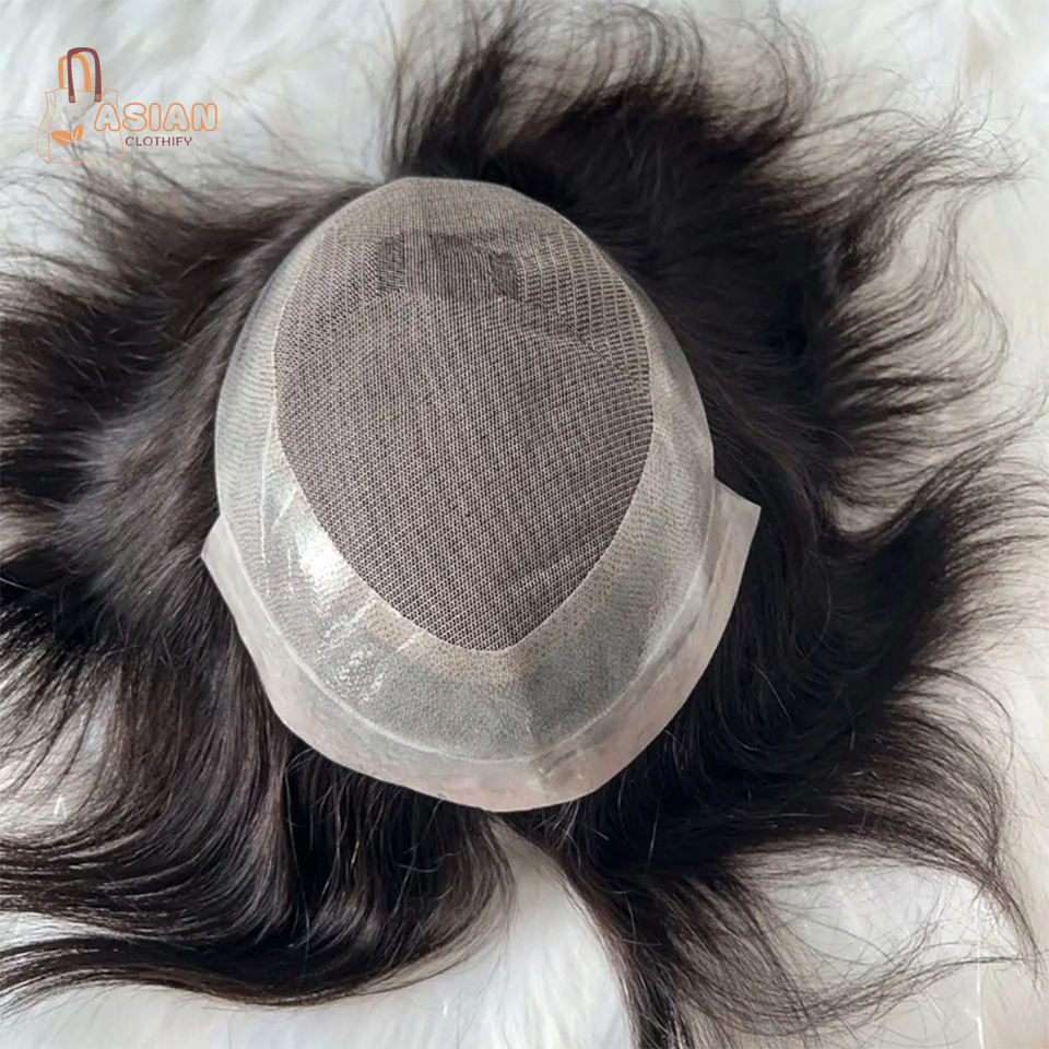 Ready to Ship Products Thin Skin 0.04-0.06mm Indian Human Hair Men's Natural Hair Wig Toupee for Men