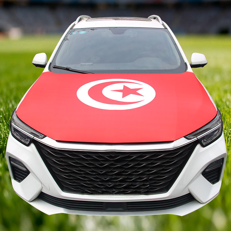 Prêt à expédier Impression par sublimation Décoration 61 pouces X 45 pouces Tissu premium Drapeau de la Tunisie Housse de rétroviseur Housse de capot de voiture Housse de capot moteur