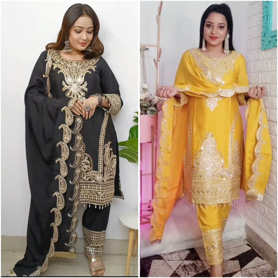Prêt à porter Lourd Faux Georgette Broderie Multi Couleur Non Cousu Salwar Costume Pakistanais Salwar Kameez Parti Indien En Gros