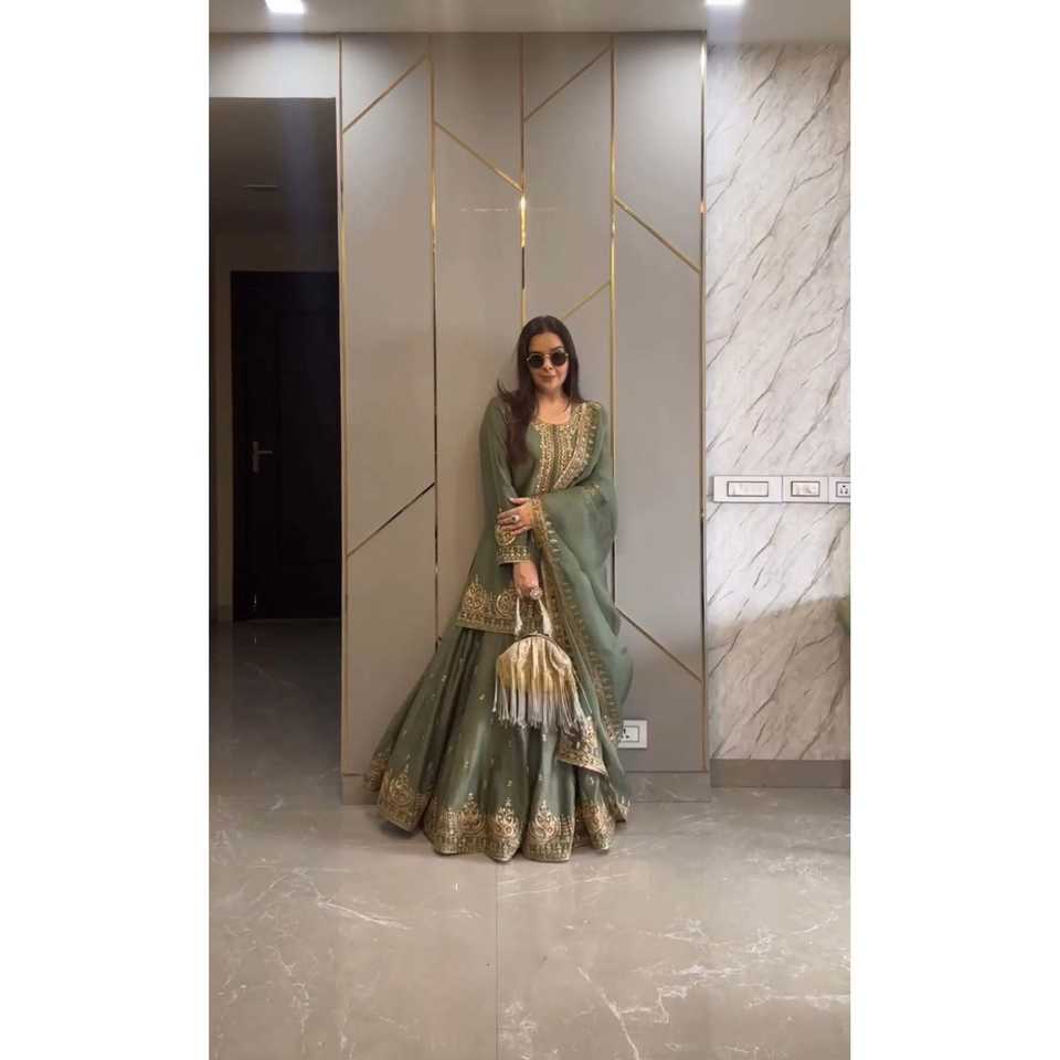 Ensemble de fête prêt-à-porter taille XL entièrement cousu haut-bas et Dupatta