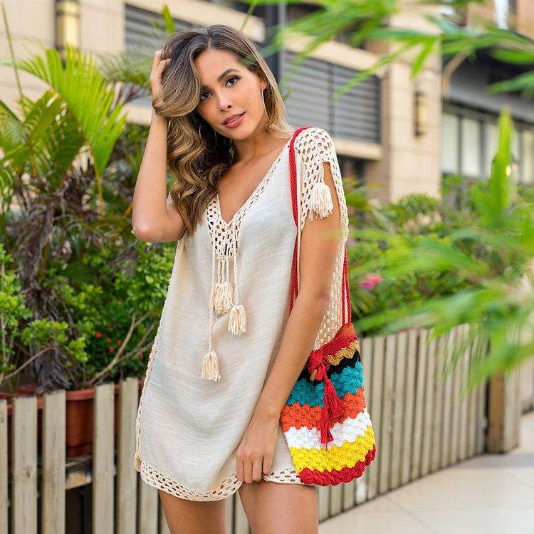 Caractéristique:Sexy Crochet Gland Frange Courte Beachwear Bikini Cover Up
