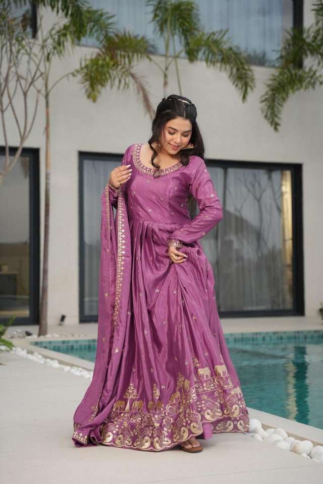 Meilleur prix femmes traditionnel indien pakistanais fête de mariage porter Readymade lourd Chinon robe broderie Zari séquence travail