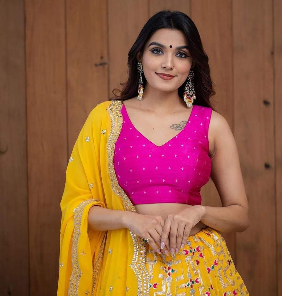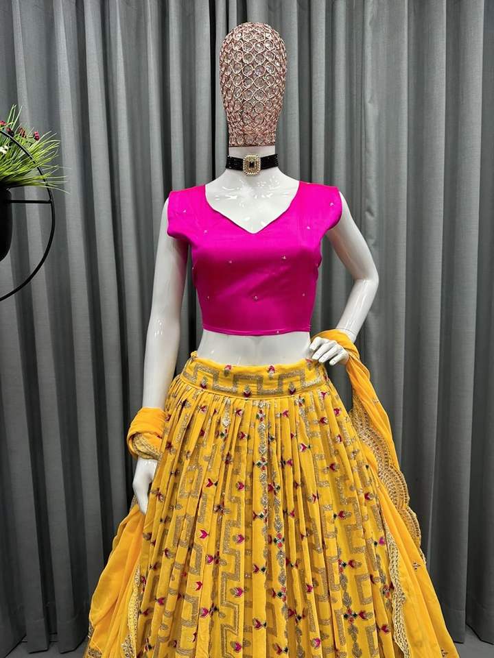 Lehenga Choli indien prêt-à-porter en georgette avec dupatta, broderie avec sequins, tenue de soirée, Haldi Lehngha Choli