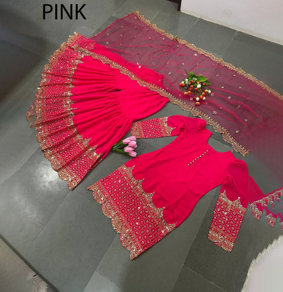 Ensemble prêt-à-porter brodé indien Sharara Gharara Kurti en tissu Georgette, tenue ethnique de créateur pakistanais pour soirée chic