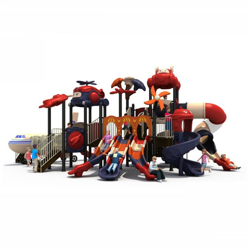 Aire de jeux d'avion réel avec triple toboggan, grande structure de jeu pour parc et école maternelle