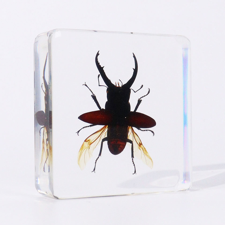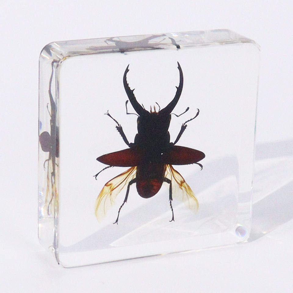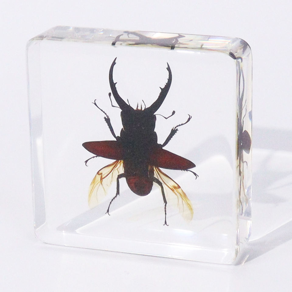 Taxidermie d'animaux réels en bloc de cristal, insecte véritable, coléoptère cerf, collection de spécimens en résine pour enfants