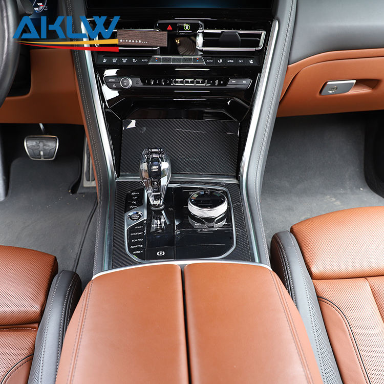 Accessoires intérieurs en fibre de carbone véritable pour BMW Série 8 M850i G14 G15 G16 2019-2022, garniture du panneau de commande central et du levier de vitesses