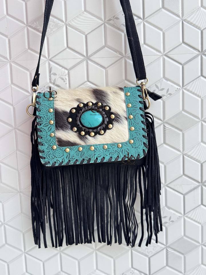 Véritable peau de vache frange sac à main Turquoise pierre sac à bandoulière Gypsy Boho Vintage fait à la main nouveau Design sac multi-usages sacs élégants