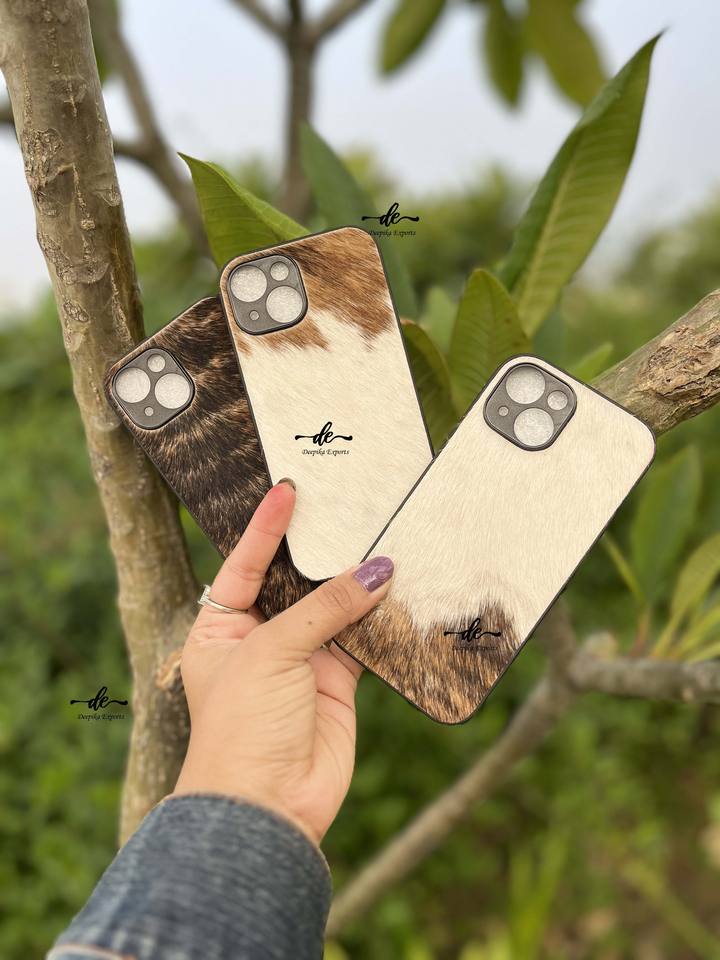 Real Cowhide Fur Leather Phone Case New Arrival Stylish Phone 15 Cover Vintage Full Grain Luxury Phone Cases